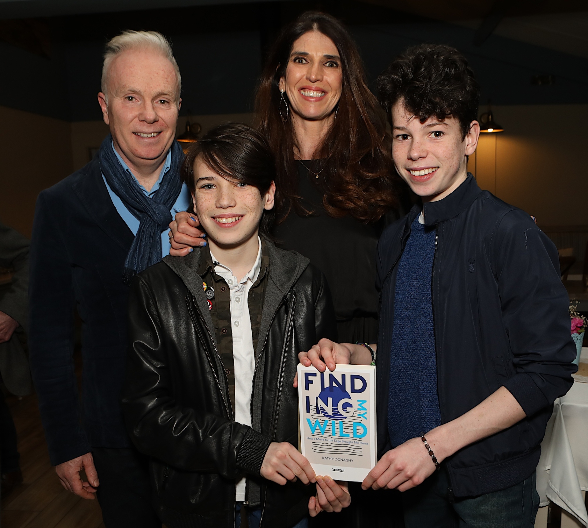 Kathy Donaghy at the launch of her book "Finding My Wild" with from left, husband Richard and children Oirghill and Dallan.
