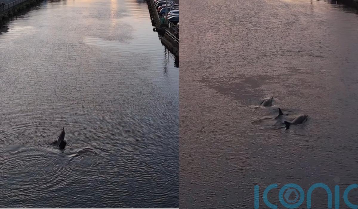 Crowds gathered to watch as a pod of dolphins were spotted swimming down the River Lee in Cork, with one local videographer calling it “an amazing sight to see”.