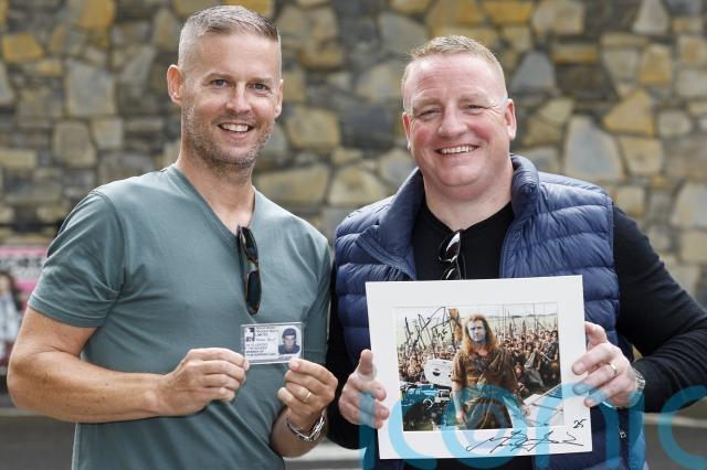 Gary Downes and Vinny McConnell, who worked as extras on the film Braveheart reunited with Gibson at the poster signing and brought memorabilia from the filming.
